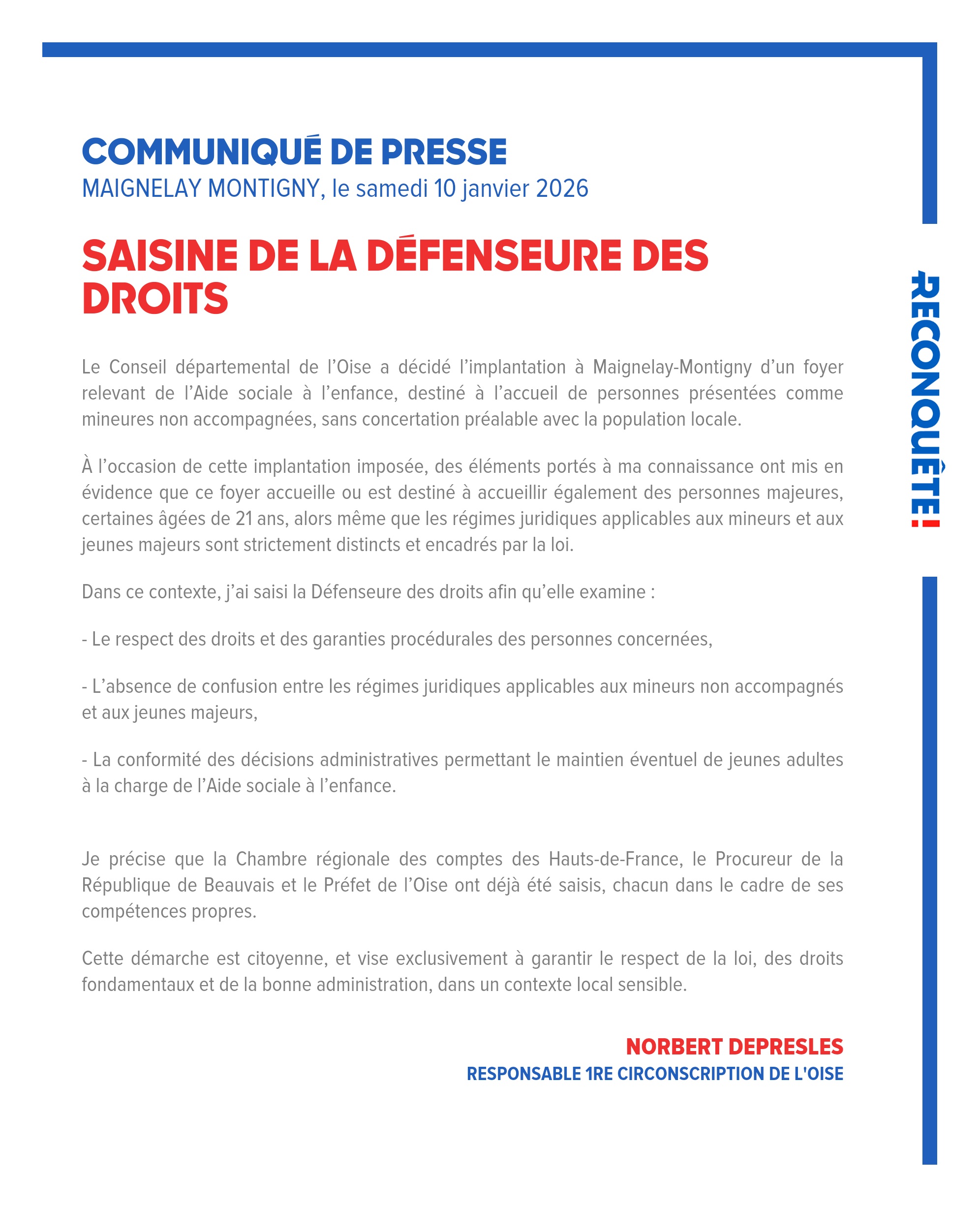 Je précise que la Chambre régionale des comptes des Hauts-de-France, le Procureur de la République de Beauvais et le Préfet de l’Oise ont déjà été saisis, chacun dans le cadre de ses compétences propres.